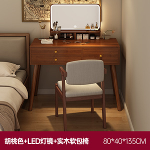 【三抽+两抽边柜+LED镜】80-120cm胡桃色+实木软包书椅