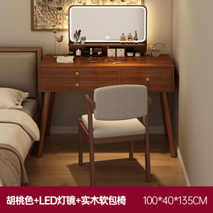 【三抽+两抽边柜+LED镜】100-140cm胡桃色+实木软包书椅