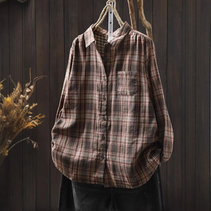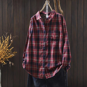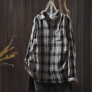 秋季新款 双层棉纱复古格子宽松休闲百搭长袖衬衫86320