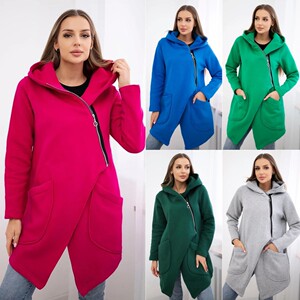 2025亚马逊连帽运动加绒卫衣休闲长袖拉链外套女式加大码纯色外套