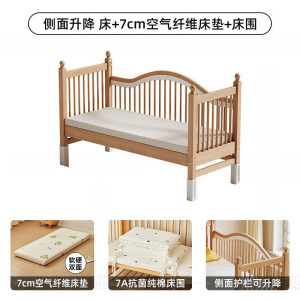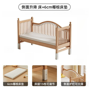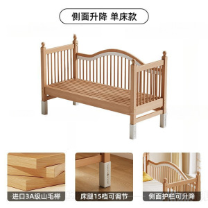 榉木儿童拼接床实木婴儿床拼接大床升降护栏加宽床边床宝宝单人床