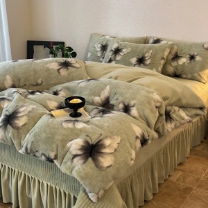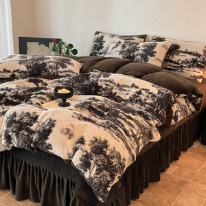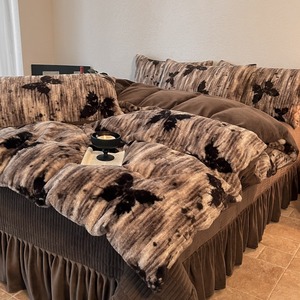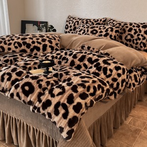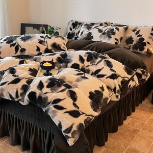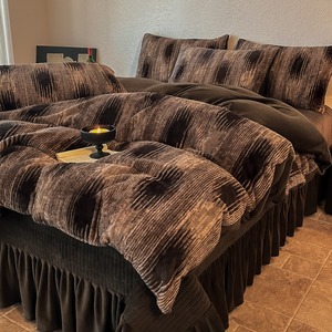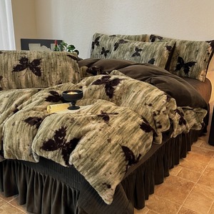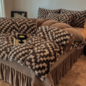 2025新款美拉德高克重兔绒牛奶双面绒床盖款四件套毛毛床单三件套