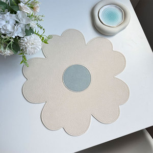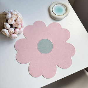 撞色花朵皮革餐垫轻奢车缝绣花隔热垫 ins风创意家居拼色装饰垫子