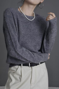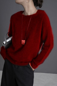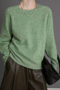 法式复古气质山羊绒羊毛拉绒圆领毛衣女超柔软软糯一线成衣针织衫