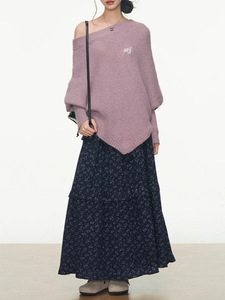 WESTAYONE斜肩毛衣上衣女宽松慵懒+碎花半身长裙小个子
