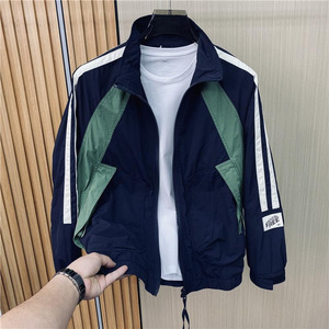 2024春夏新品薄料立领休闲夹克外套时尚潮牌拼接运动工装上衣