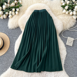 法式松紧腰显瘦A字百褶半身裙女2025秋季高腰大摆垂感过膝中长裙