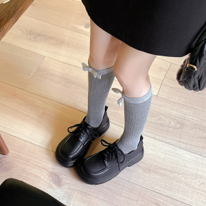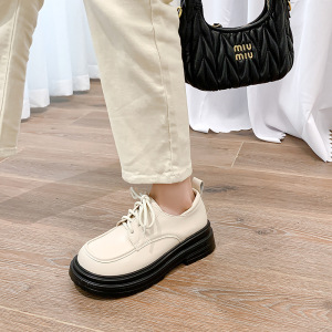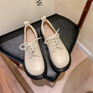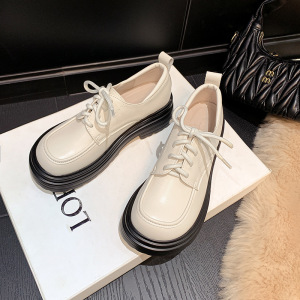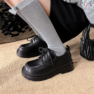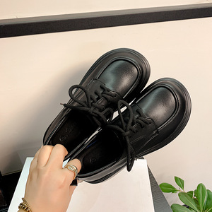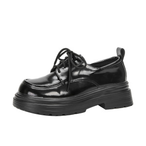 现货秒发~2025新款复古黑色单鞋女亮皮厚底百搭英伦风系带小皮鞋