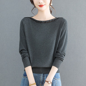 一字领针织打底衫女长袖早秋季2025新款中年妈妈春秋上衣薄款毛衣