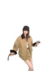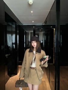复古工装时尚套装女秋季2025新款翻领长袖外套高腰A字裙裤两件套