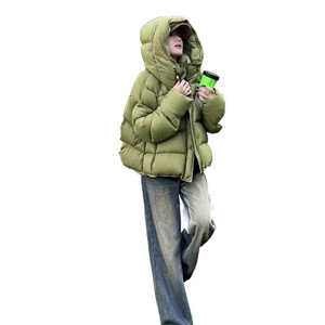 泡芙云朵绿色龟背短款羽绒服女2025冬季新款鸭绒连帽