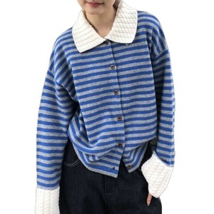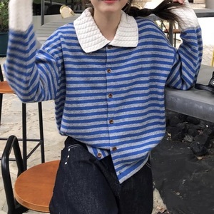 韩系条纹撞色翻领针织开衫外套秋冬新款时尚百搭减龄毛衣上衣女