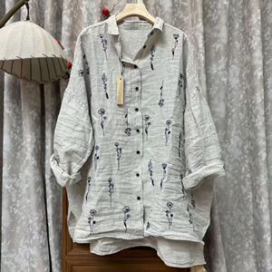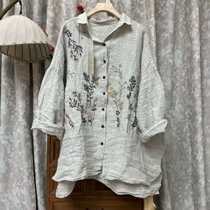 刺绣亚麻衬衫 2025 秋新款文艺通勤翻领衬衫宽松版衬衣开衫