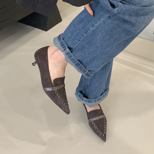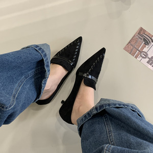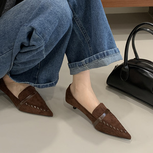 法式英伦风细跟小皮鞋女2025秋冬新款尖头高跟鞋深口气质职业单鞋