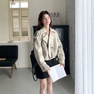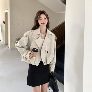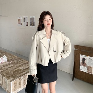 米白色工装风衣外套女春秋2025新款休闲韩系独特设计短款小个子