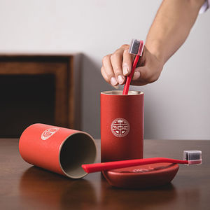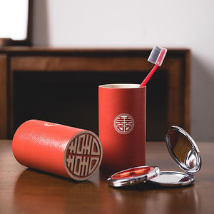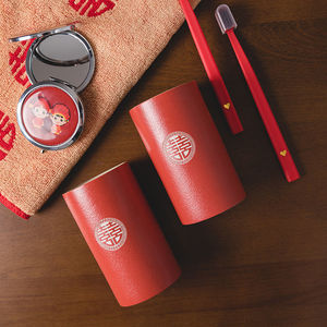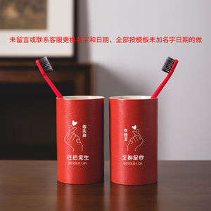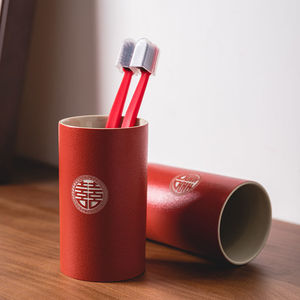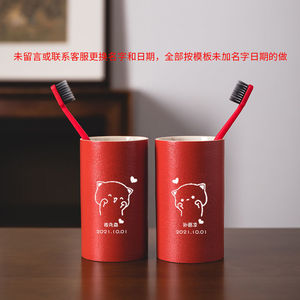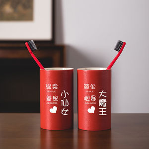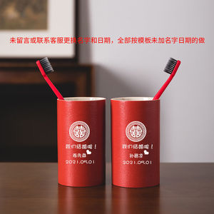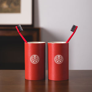 结婚洗漱杯牙刷陪嫁套装情侣一对红色陶瓷漱口杯创意钉制新婚用