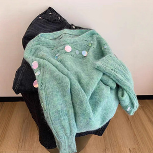 自留款推荐~多巴胺绿色镂空亮片针织衫女秋季新款高级感软糯毛衣
