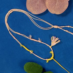 藏式唐卡吊坠绳手搓棉线编织项链绳民族风手编五路财神唐卡挂脖绳