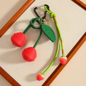 跨境欧美pu樱桃编织球挂件钥匙扣miu系时尚可爱草莓包包挂件挂饰