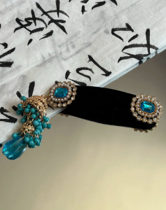 古典韵味新中式蓝色流苏发夹女绝美边夹刘海发卡发饰