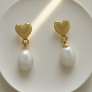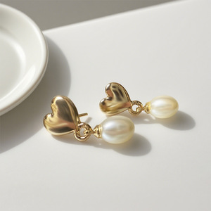 珍珠桃心耳环日常通勤小巧饰品高级感耳钉精致时尚百搭轻奢耳饰