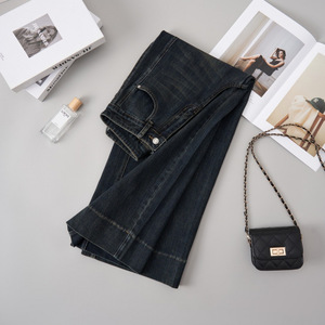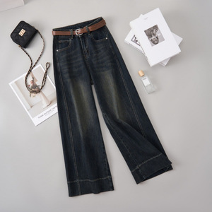 大码牛仔裤女2025早秋新款高腰直筒小个子九分窄版阔腿裤KX