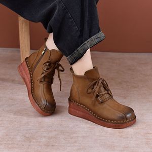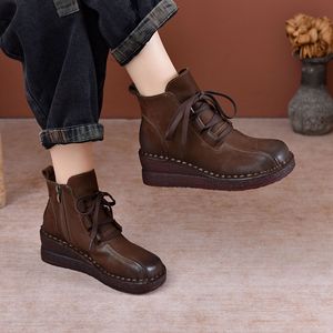 龍林2025秋冬季新款头层牛皮复古文艺小众短靴舒适简约百搭款短靴