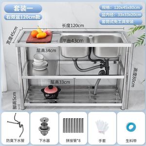 支架水槽加厚不锈钢一体台面带水池洗手盆厨房单槽洗菜双槽出租房
