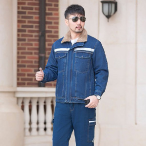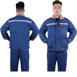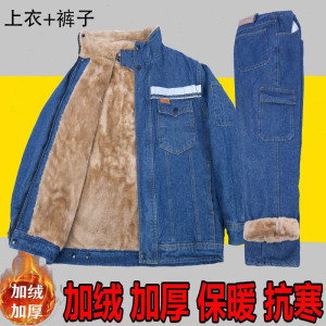 加厚棉服加绒外套牛仔工作服男冬季电焊耐磨棉袄防烫抗火花劳保暖