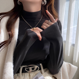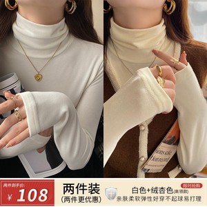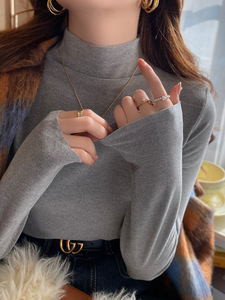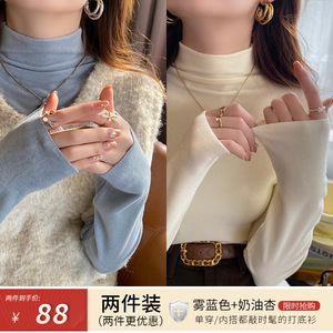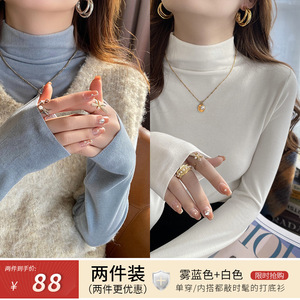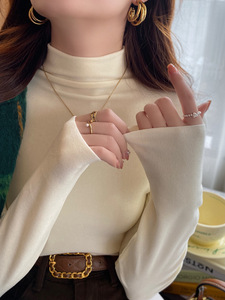 蓝色高领内搭打底衫女加绒保暖2025年新款德绒长袖修身设计感上衣