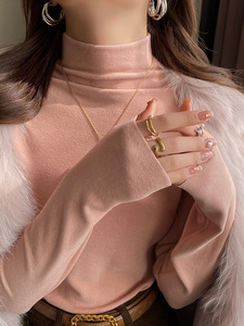 少女粉~半高领升级双面蛋白羊绒面料