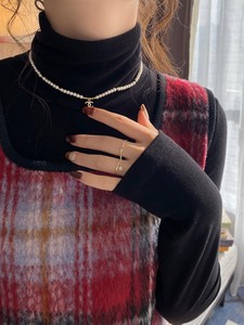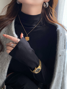 黑色~半高领升级双面蛋白羊绒面料