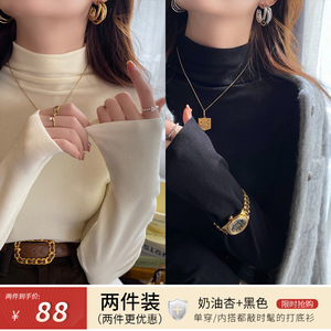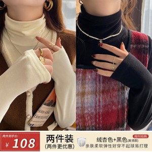 奶油杏+黑色(半高领升级双面蛋白羊绒面料)