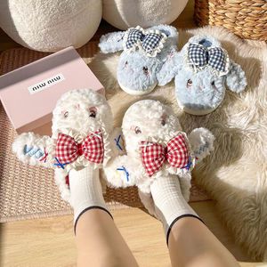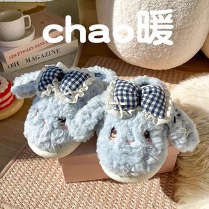 棉拖鞋女款秋冬季新款蝴蝶结兔兔室内居家防滑厚底加绒保暖毛毛拖