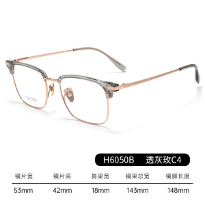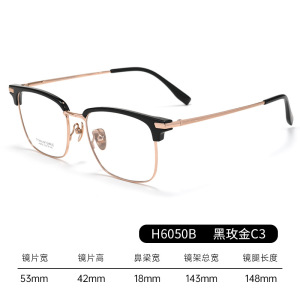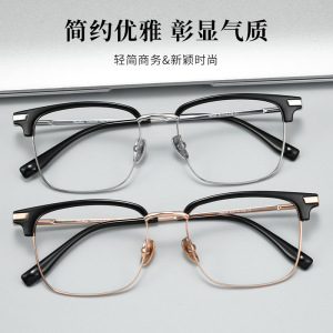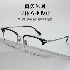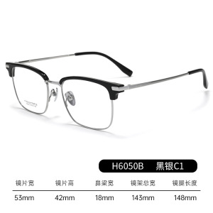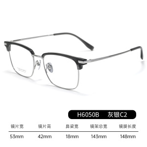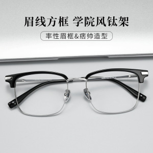 百世芬新款H6050B超轻半钛眉毛框大脸眉毛眉线大框可配度数眼镜男