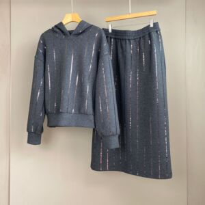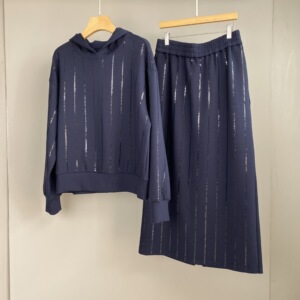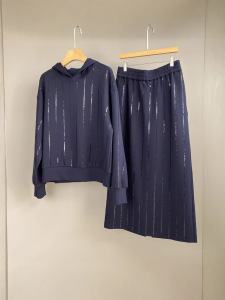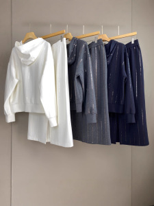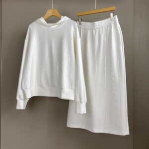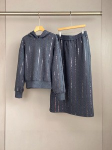 南油篙品25秋冬新款BC重工亮片棉质连帽卫衣松紧腰半裙时尚套装女