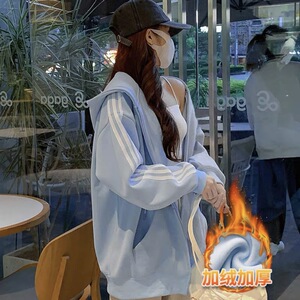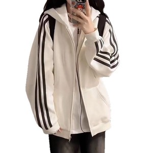 跨境外贸 美式慵懒风卫衣女春秋新款学院风宽松拉链开衫连帽外套