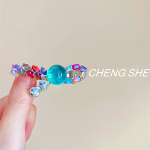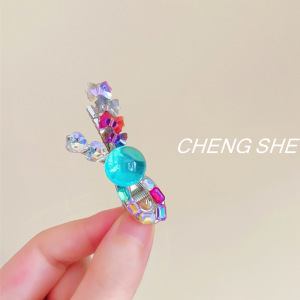 新款水晶球彩钻剪刀形状发夹品质高饱和精致球球闪钻发夹轻奢高级