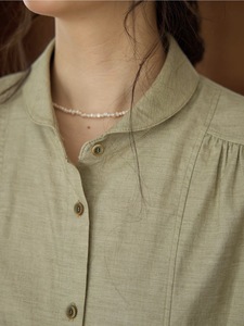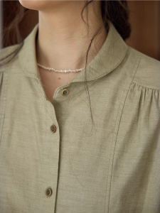 solighter 法式复古翻领泡泡袖衬衫女春季2025新款长袖衬衣上衣
