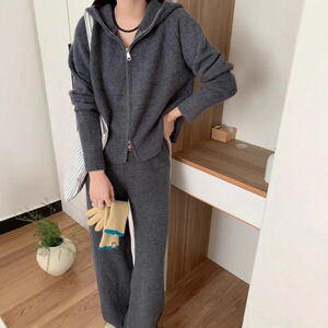 连帽拉链针织套装女秋冬新款时尚高级感气质毛衣阔腿裤女装两件套