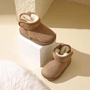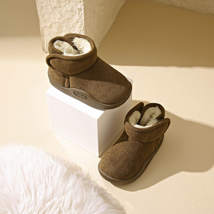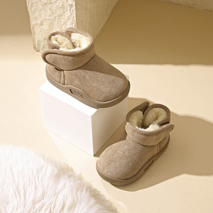 加绒雪地靴宝宝冬季外穿厚底皮毛一体防水短筒靴子男女儿童大棉鞋