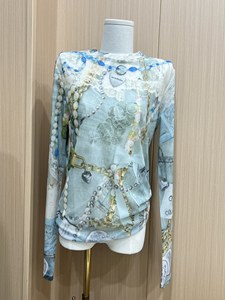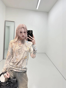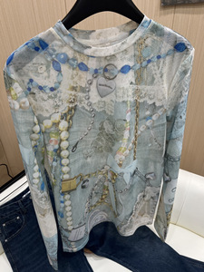 跨境高版本ACN蕾丝印花圆领套头网纱长袖打底衫防晒衣2025新款