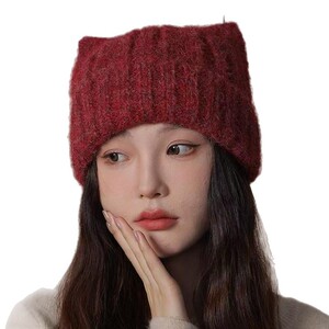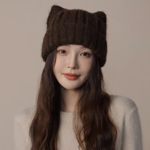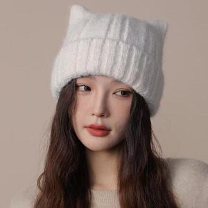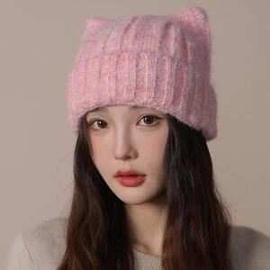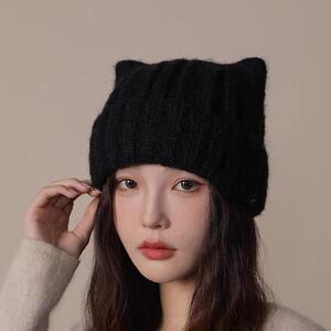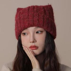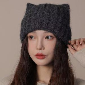 帽子可爱秋冬季耳朵毛线帽新款大头子女秋冬护耳加厚保暖显脸针织