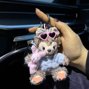雪莉玫蓝毛衣抱兔钥匙扣装饰毛绒玩偶娃娃粉色系卡通包包公仔挂件