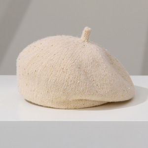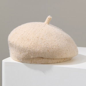 秋冬季英伦风亮片针织贝雷帽子女韩系百搭保暖帽时尚休闲画家帽潮