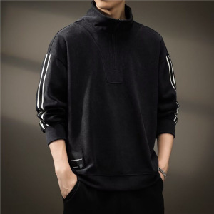 高级感半拉链卫衣男士2025秋季新款立领休闲条纹外套男
