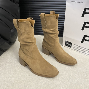 废土风粗跟内增高堆堆靴短靴子女夏2025新款配裙子西部牛仔马丁靴