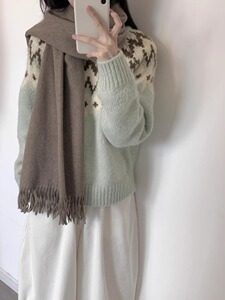 费尔岛圆领毛衣女秋冬款韩系穿搭冬季宽松慵懒高级感软糯上衣