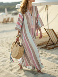 2025外贸跨境新款女装 休闲长袖V领数码印花女式连衣裙长裙