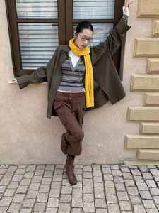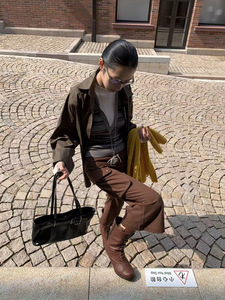 [9hour]个性分割设计感衬衫女 2025秋季宽松百搭长袖上衣女c9766